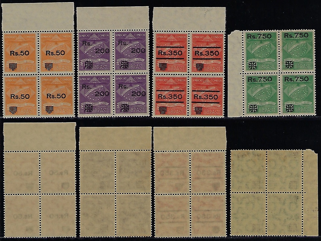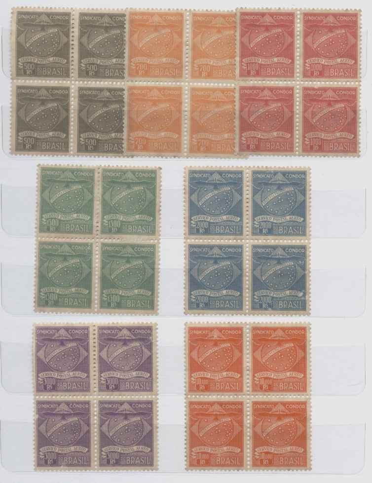 | 84713 | Condor-12/15, Emissão Provisórios para as tarifas de 5 gramas, série completa em quadras com margem de folha, mint (catálogo 366 UF) | 366,00 | Foto |