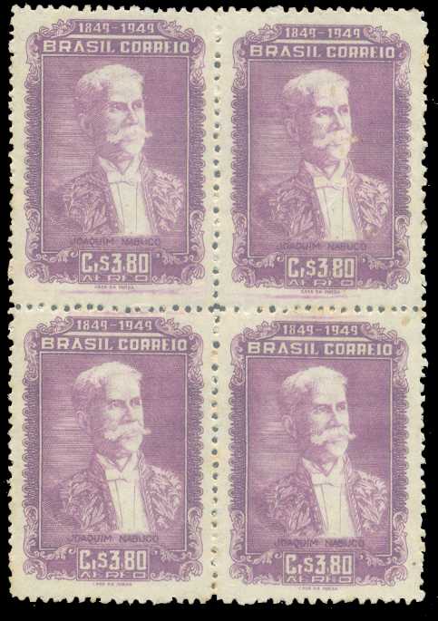 | 74903 | 74, Centenário do Nascimento de Joaquim Nabuco, par, PROVA sem filigrana, e quadra do selo emitido, sem uso | 100,00 | Foto |