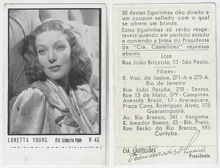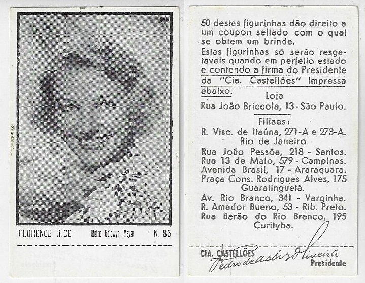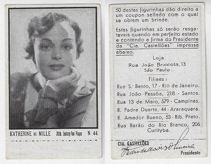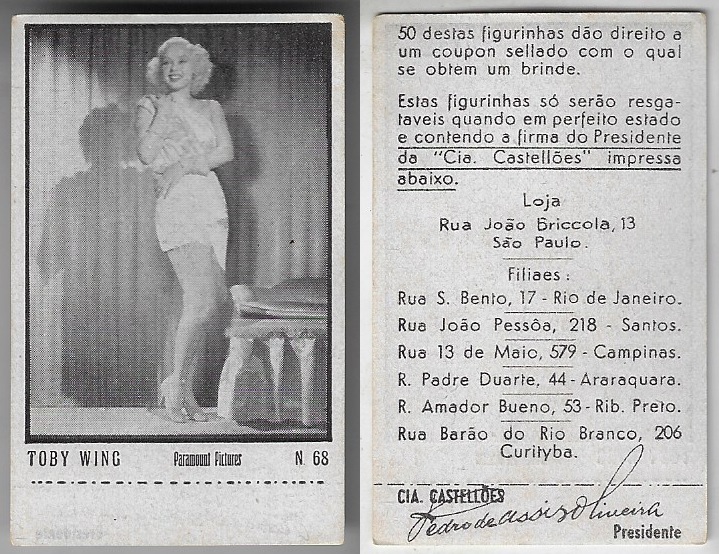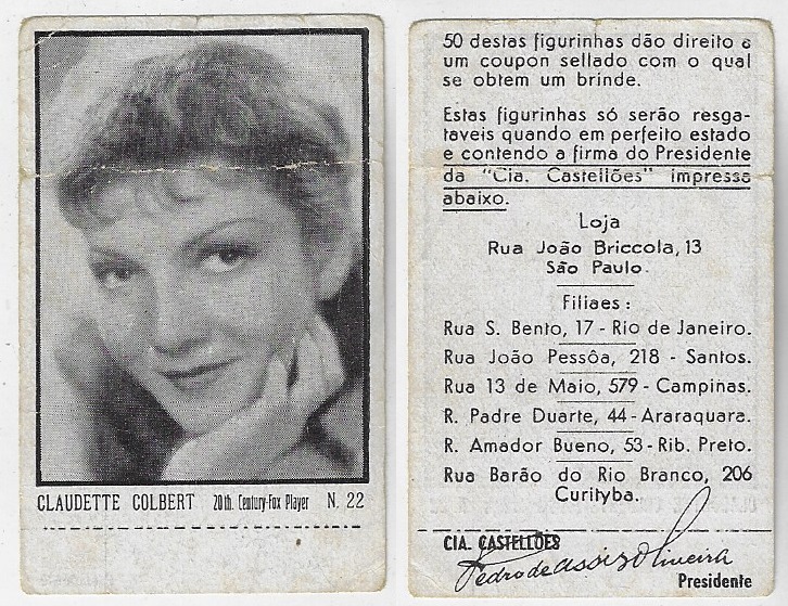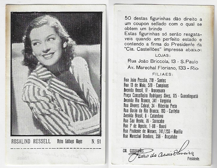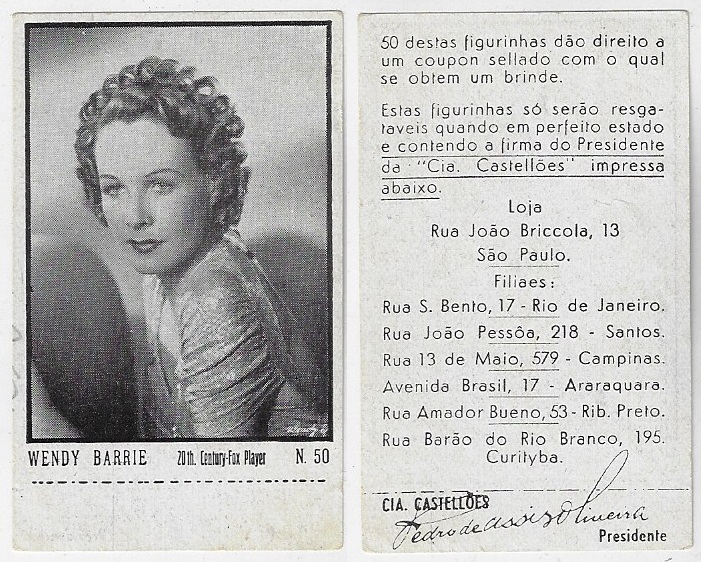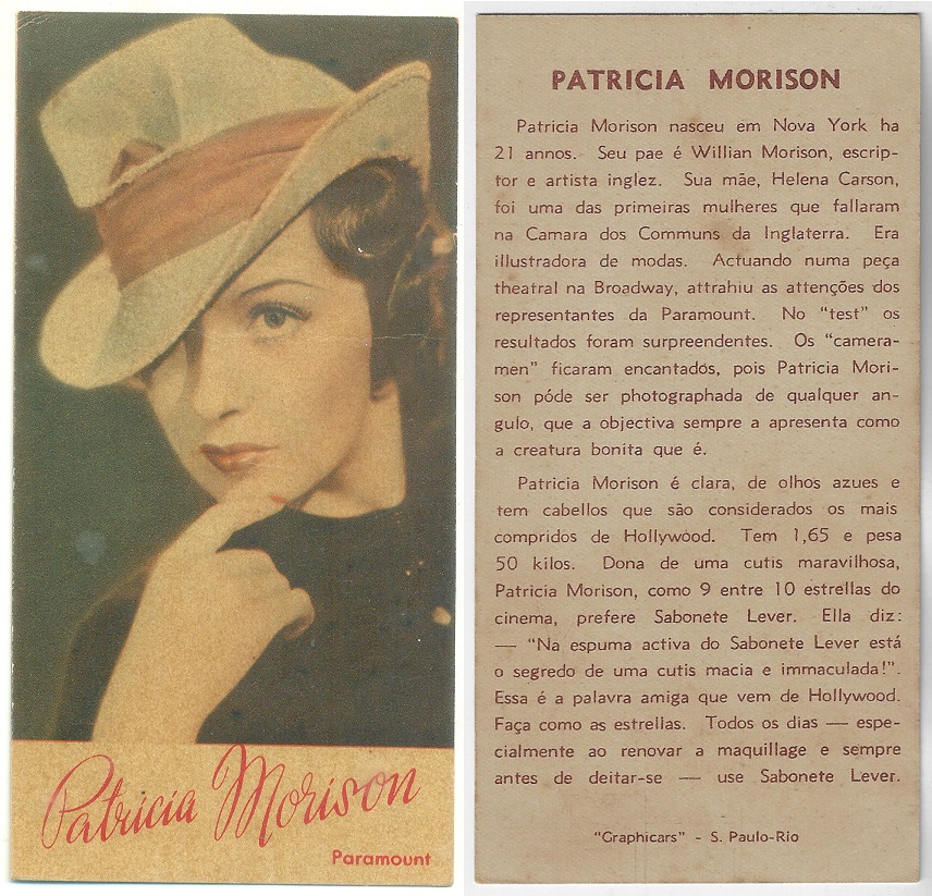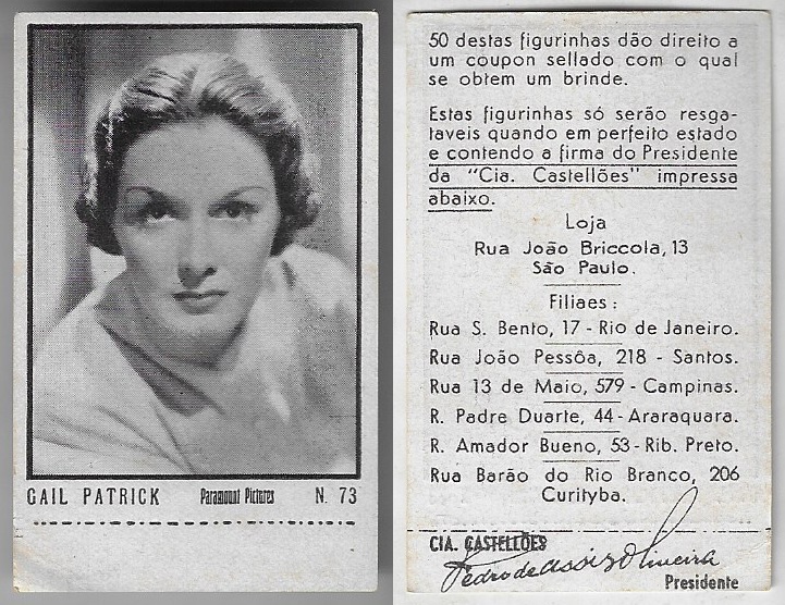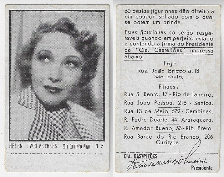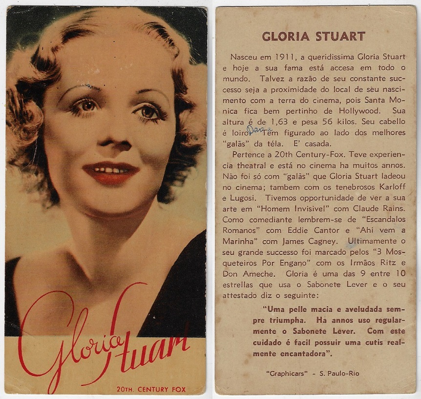| 66165 | Brasil, 1930s, estampa Eucalol série 59, estampa 6, "Artistas de Cinema - Claire Trevor", verso "Usem...", leves dobras | 25,00 | Foto |