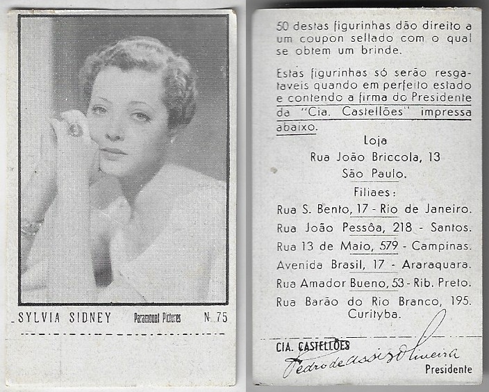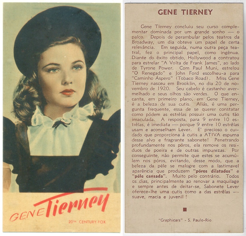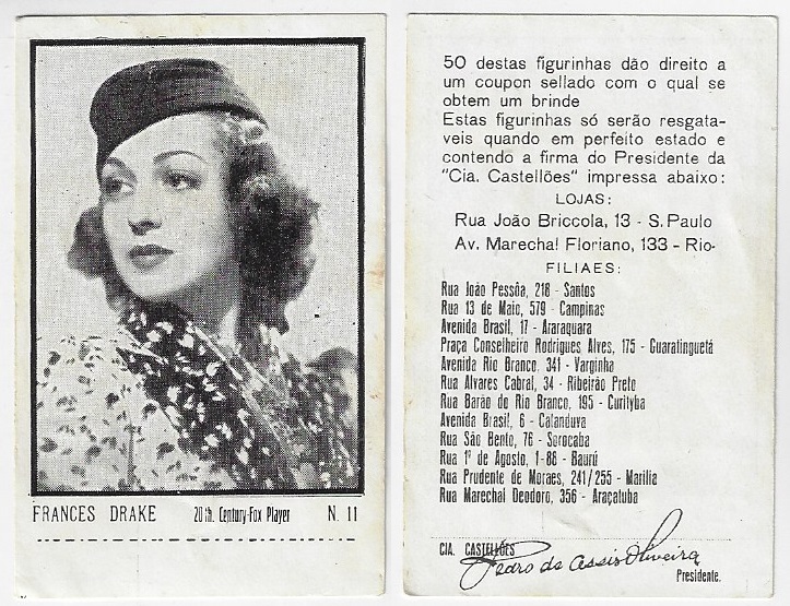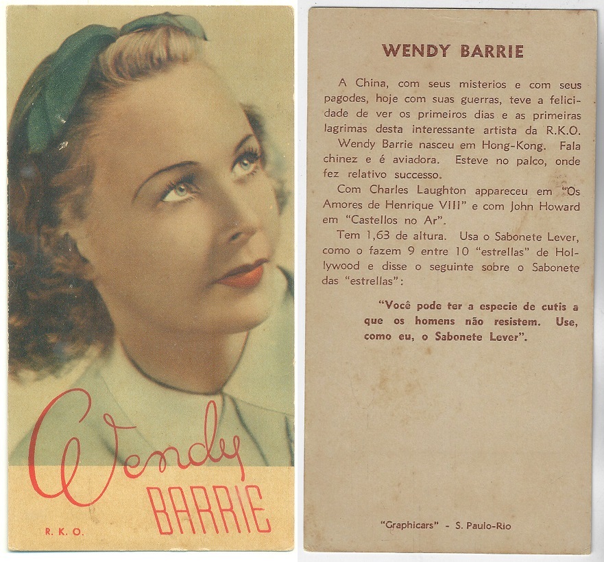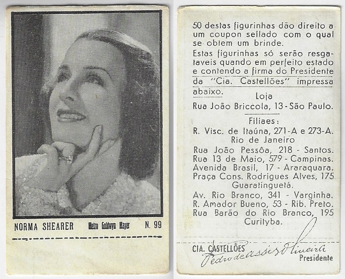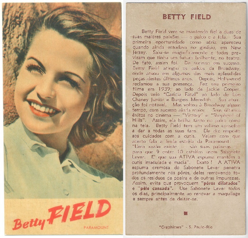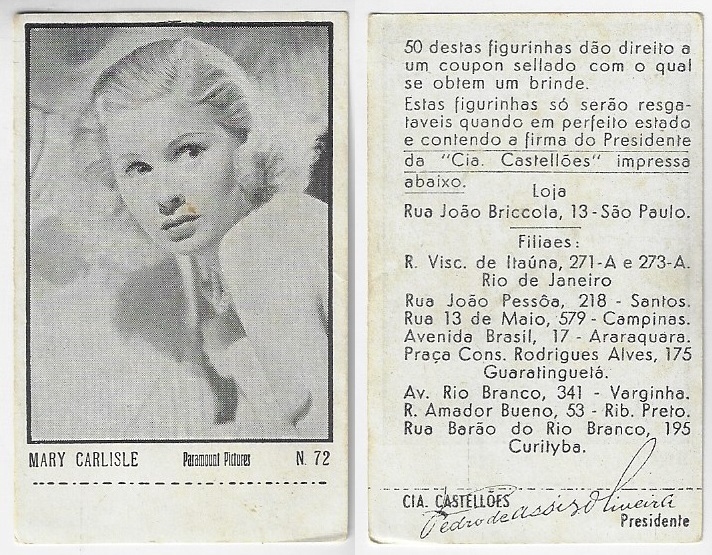 | 66107 | Brasil, 1930s, estampa Eucalol série 59, estampa 6, "Celebridades da Tela - Claire Trevor", verso "Usem..." | 25,00 | Foto |