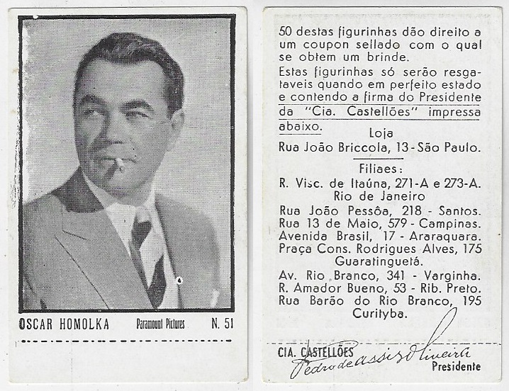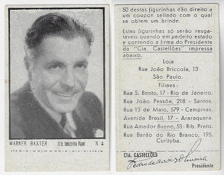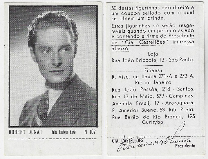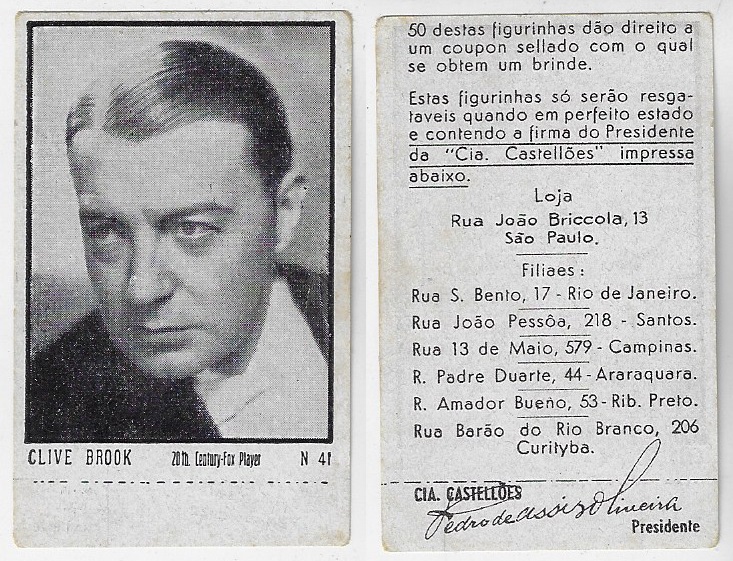 | 66184 | Brasil, 1930s, estampa Eucalol série 63, estampa 5, "Artistas de Cinema - Adolf Wohlbrueck", verso "Usem..." | 25,00 | Foto |