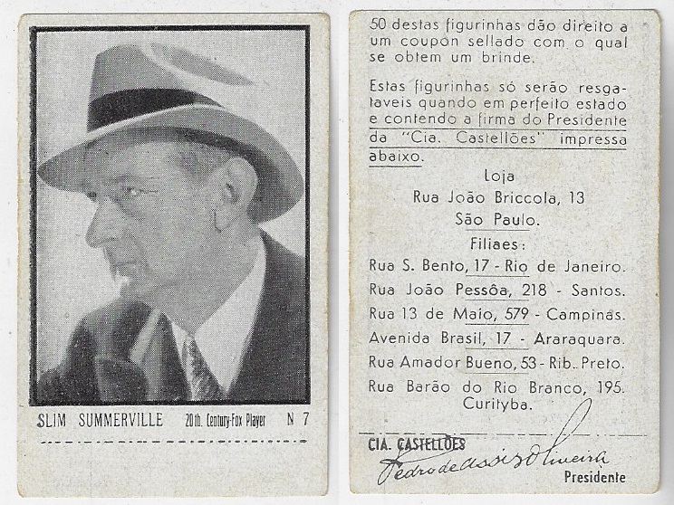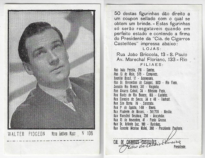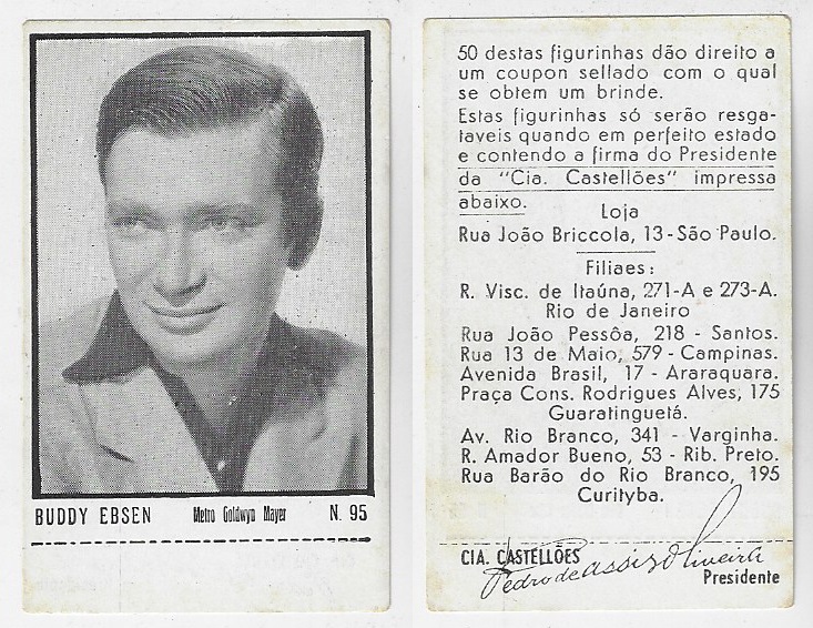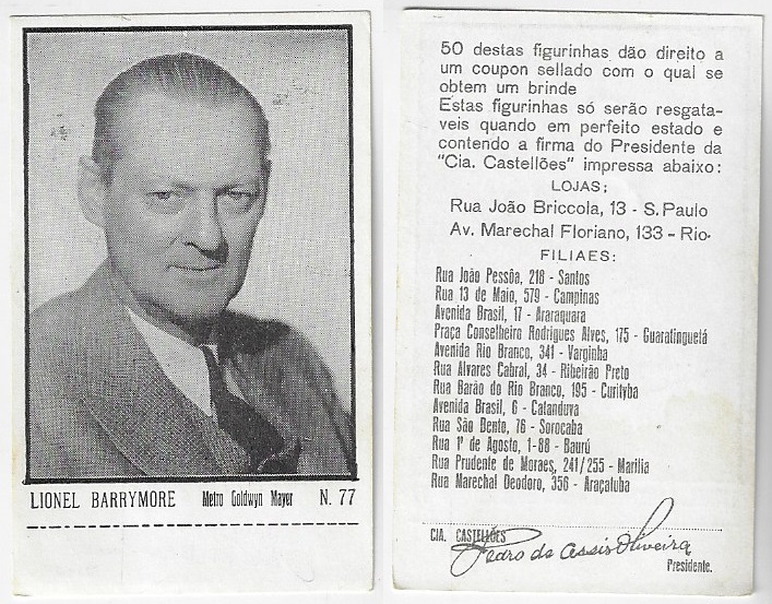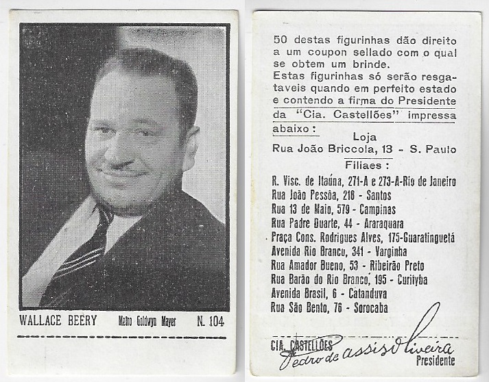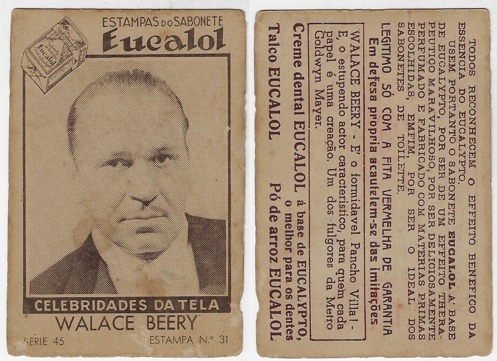 | 66091 | Brasil, 1930s, estampa Eucalol série 45, estampa 31, "Celebridades da Tela - Walace Beery", verso "Todos...", roídos no verso | 15,00 | Foto |