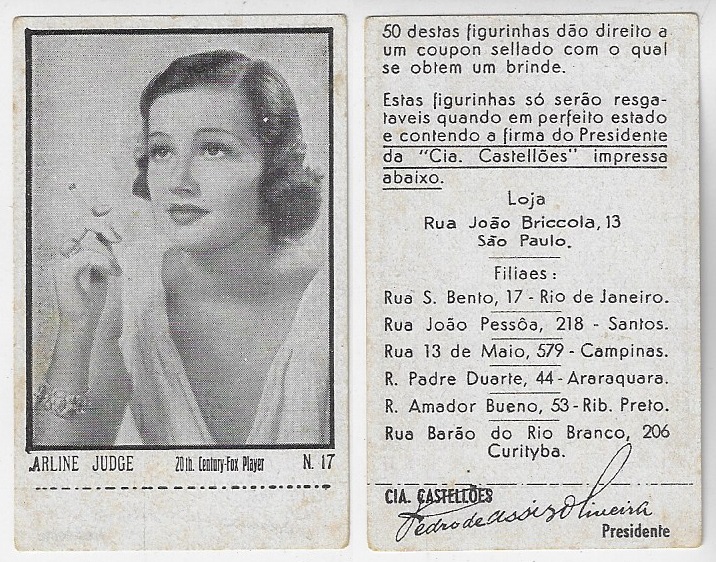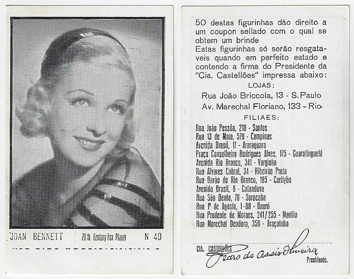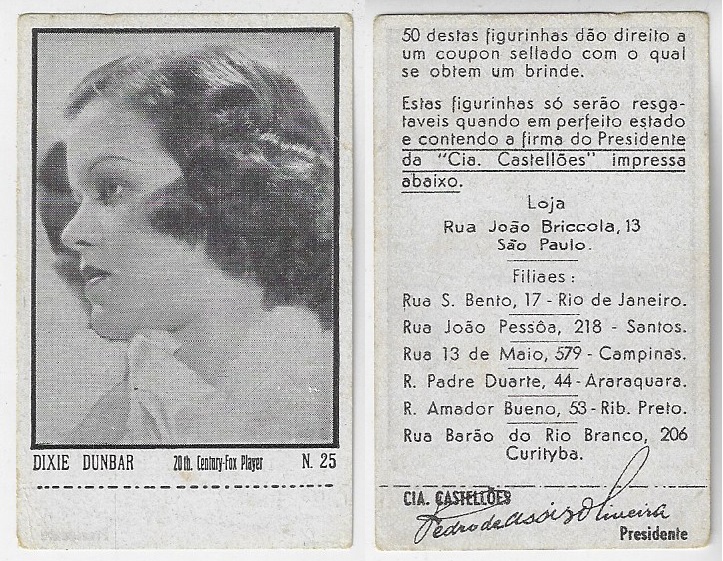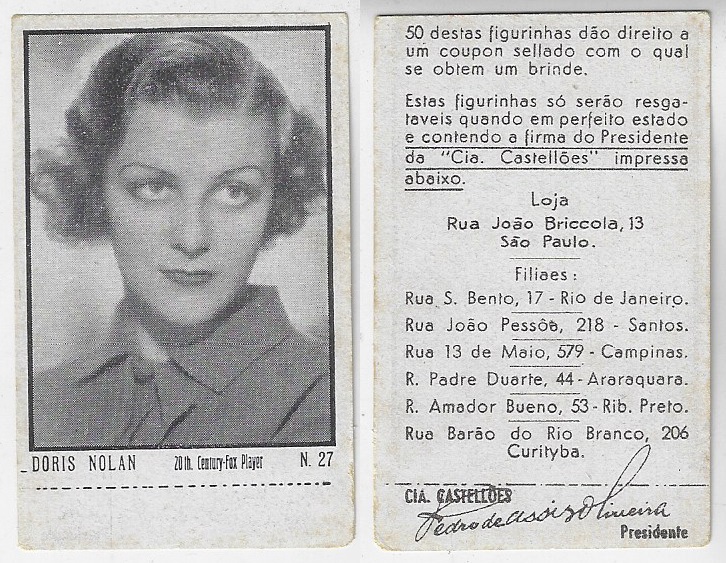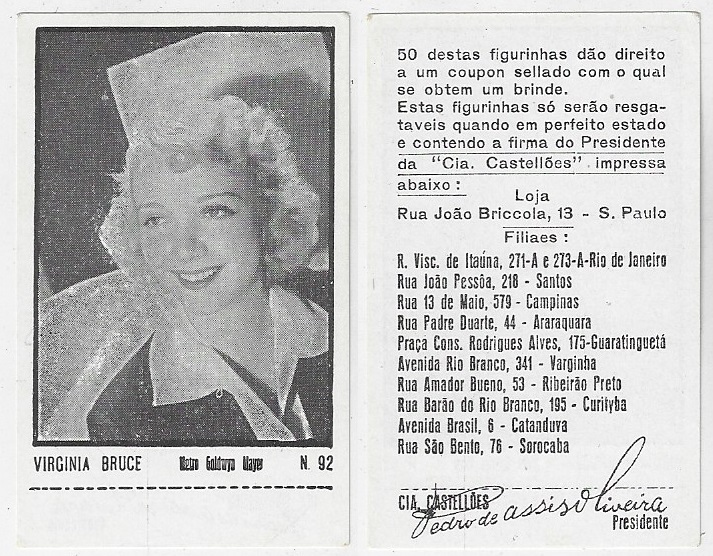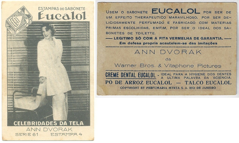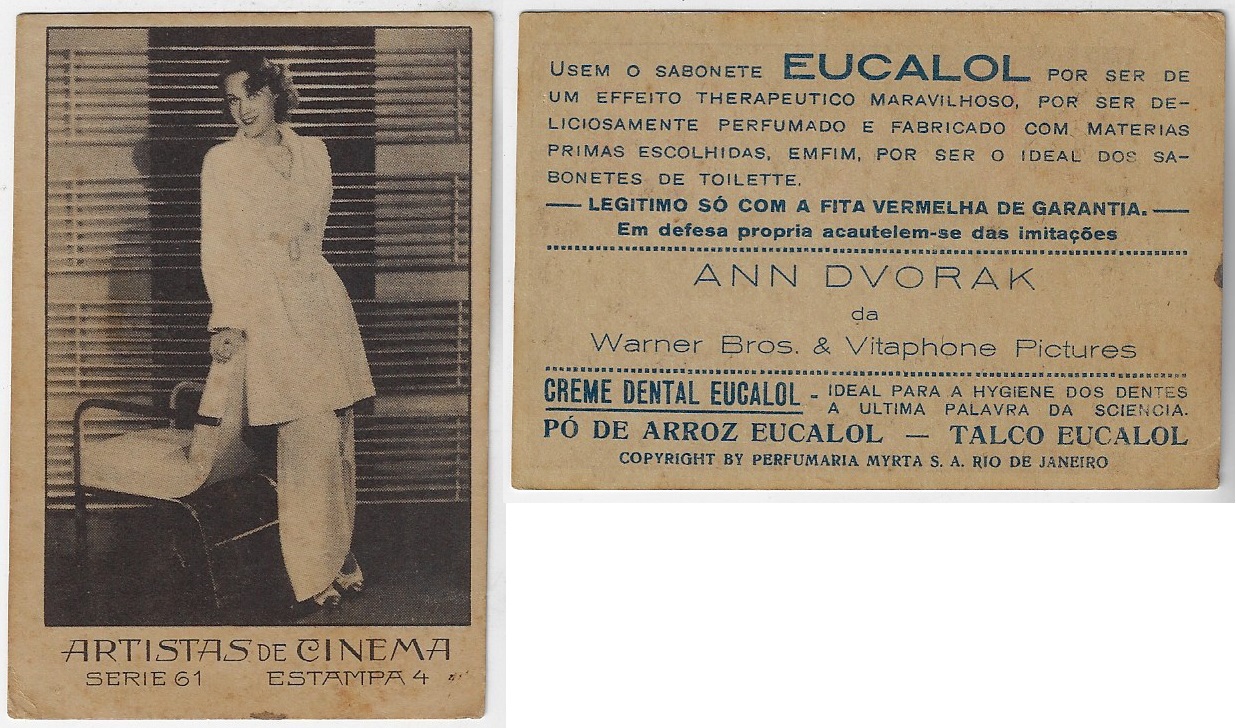 | 66173 | Brasil, 1930s, estampa Eucalol série 61, estampa 4, "Artistas de Cinema - Ann Dvorak", verso "Usem..." | 25,00 | Foto |