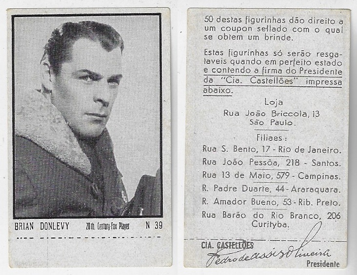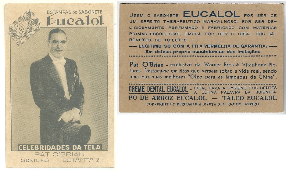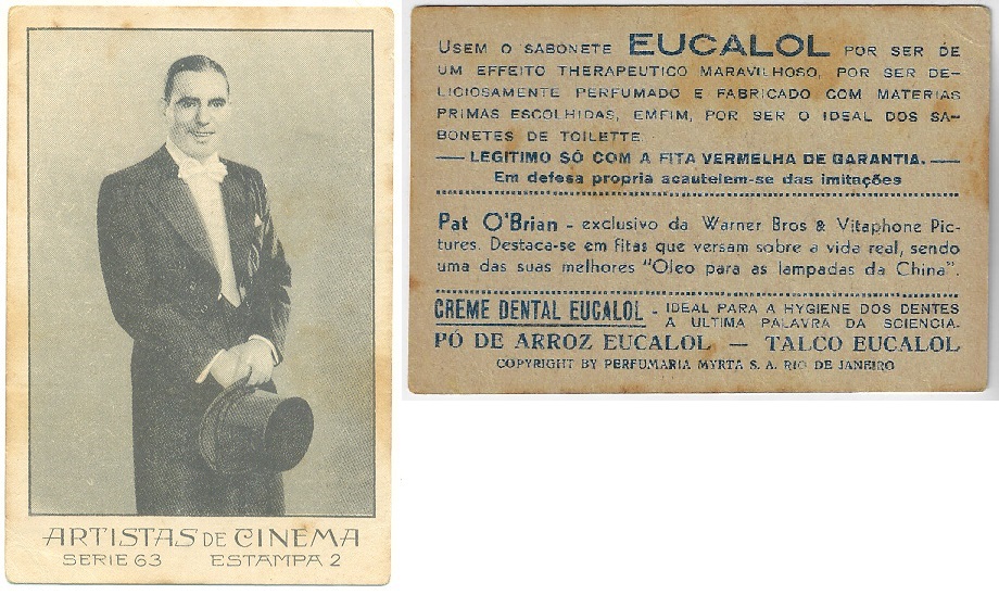 | 66127 | Brasil, 1930s, estampa Eucalol série 63, estampa 2, "Celebridades da Tela - Pat O´Brian", verso "Usem..." | 25,00 | Foto |