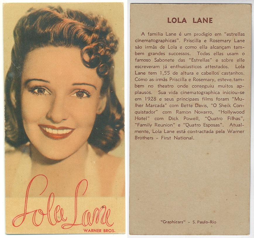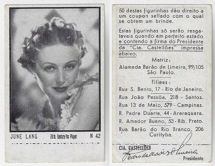 | 66158 | Brasil, 1930s, estampa Eucalol série 58, estampa 3, "Artistas de Cinema - June Lang", verso "Usem..." | 25,00 | Foto |