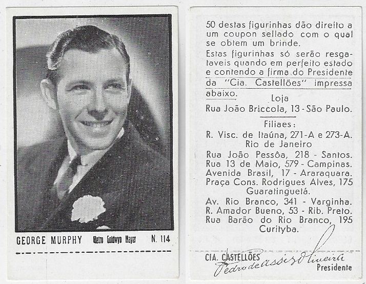 | 66181 | Brasil, 1930s, estampa Eucalol série 63, estampa 2, "Artistas de Cinema - Pat O´Brian", verso "Usem..." | 25,00 | Foto |