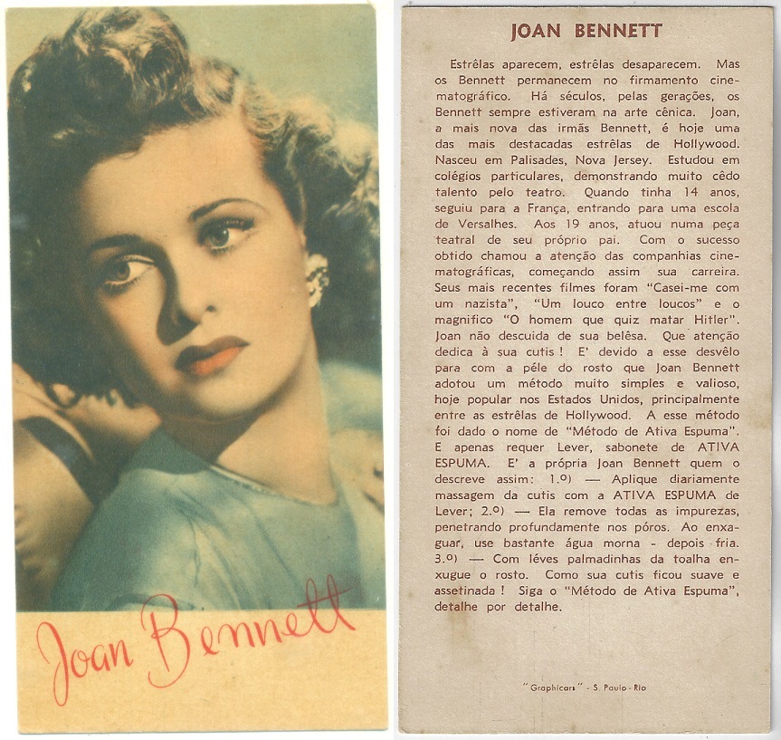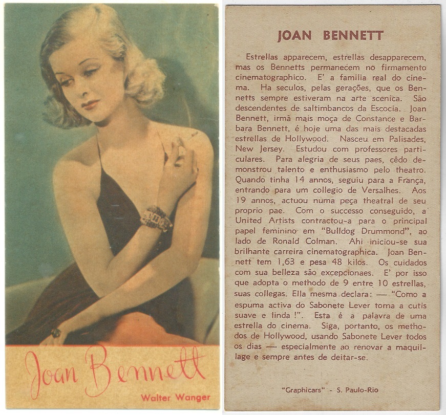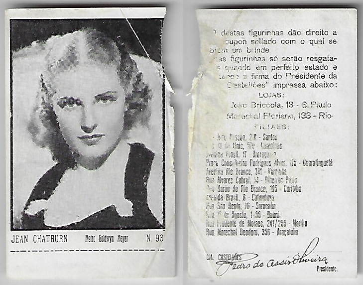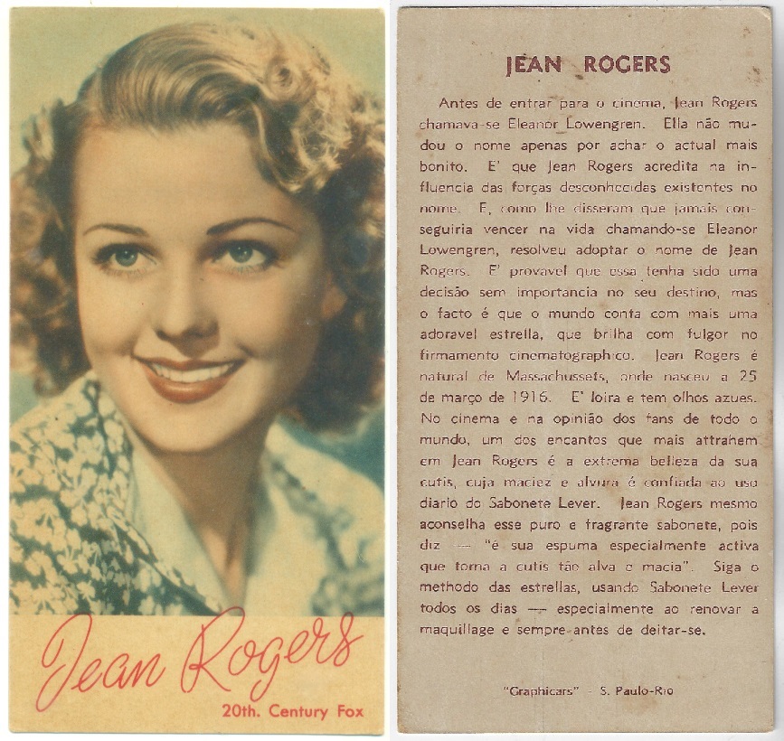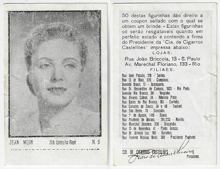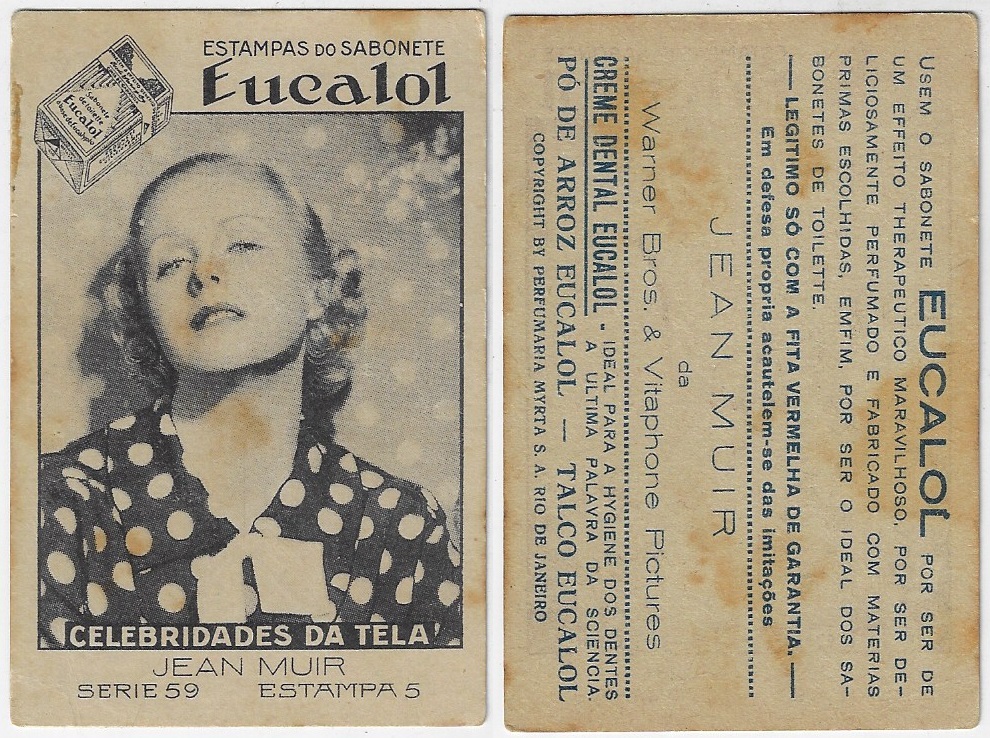 | 66106 | Brasil, 1930s, estampa Eucalol série 59, estampa 5, "Celebridades da Tela - Jean Muir", verso "Usem..." | 25,00 | Foto |