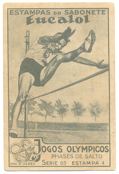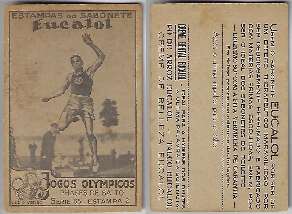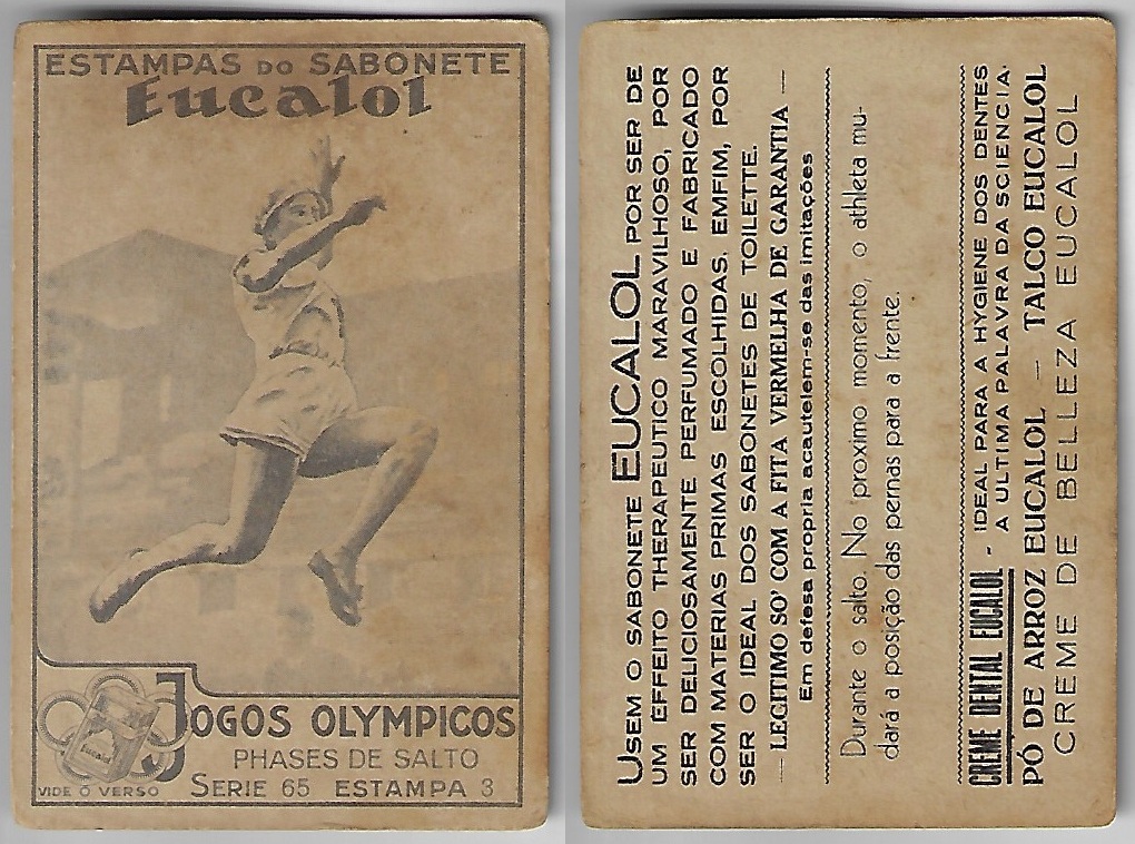 | 66030 | Brasil, 1930s, estampa Eucalol série 65, estampa 2, "Jogos Olímpicos - Fases do Salto", verso "Usem..." | 20,00 | Foto |