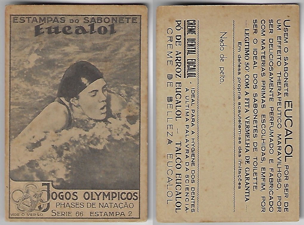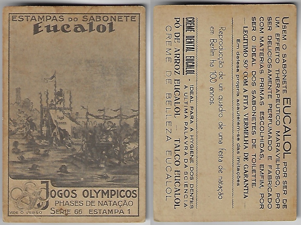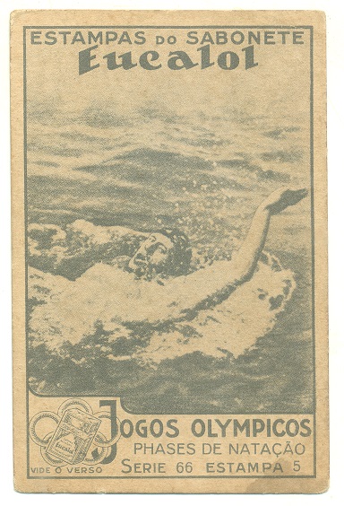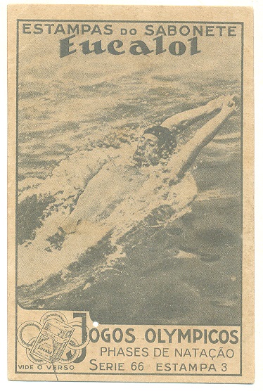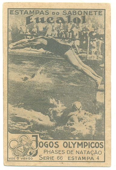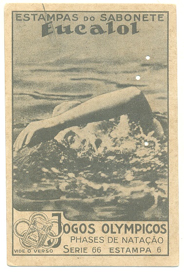 | 66034 | Brasil, 1930s, estampa Eucalol série 66, estampa 2, "Jogos Olímpicos - Fases da Natação", verso "Usem..." | 20,00 | Foto |