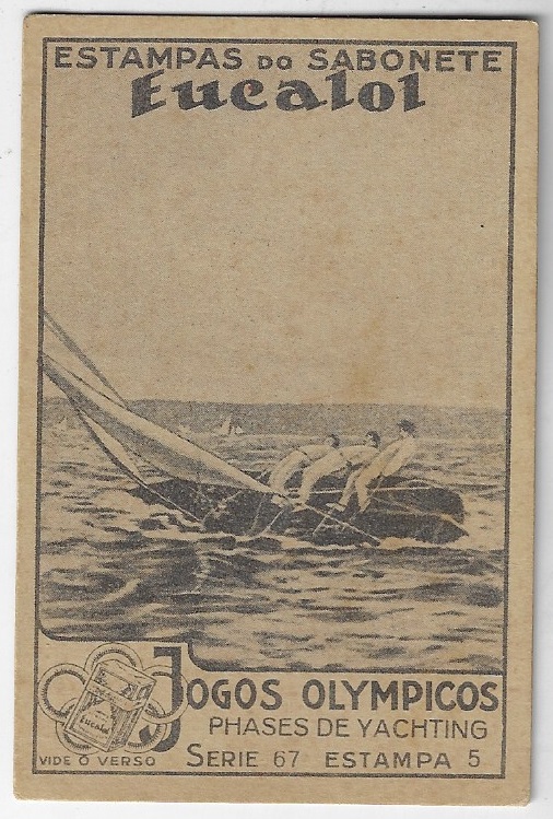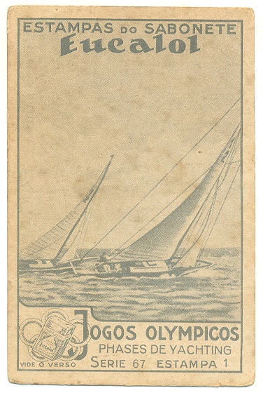 | 66141 | Brasil, 1930s, estampa Eucalol série 67, estampa 1, "Jogos Olímpicos - Fases do Iatismo", verso "Usem..." | 20,00 | Foto |