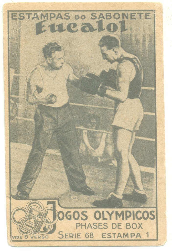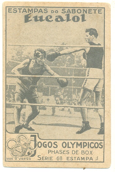 | 66143 | Brasil, 1930s, estampa Eucalol série 68, estampa 2, "Jogos Olímpicos - Fases do Box", verso "Usem..." | 20,00 | Foto |