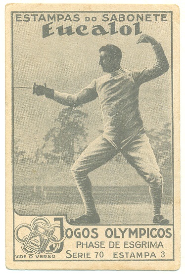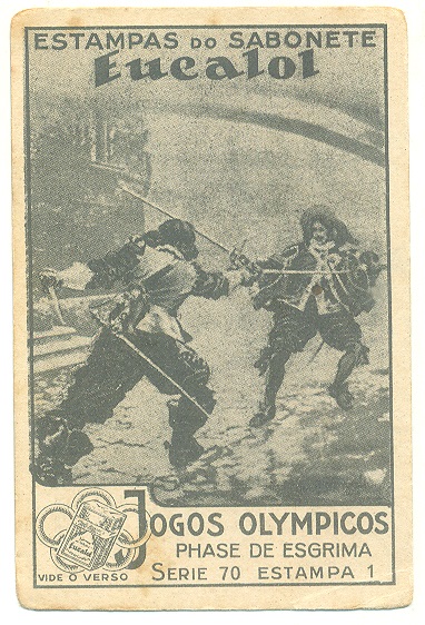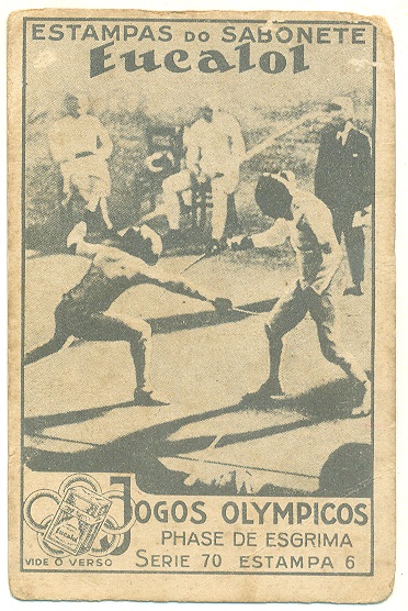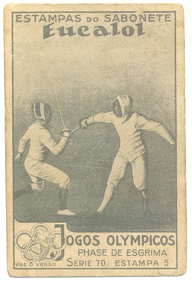| 66048 | Brasil, 1930s, estampa Eucalol série 70, estampa 1, "Jogos Olímpicos - Fases da Esgrima", verso "Usem...", dobra de canto, assinada e datada no verso | 20,00 | Foto |