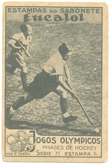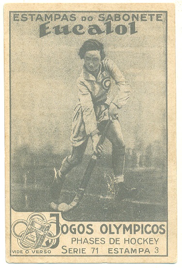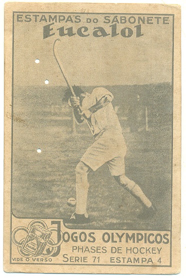 | 66189 | Brasil, 1930s, estampa Eucalol série 65, estampa 1, "Jogos Olímpicos - Fases do Salto", verso "Usem...", 1 furo de cupim | 15,00 | Foto |