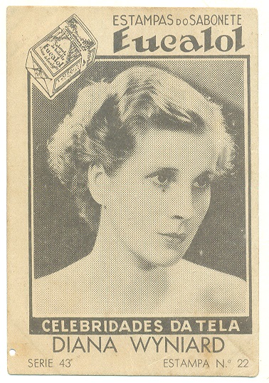 | 66082 | Brasil, 1930s, estampa Eucalol série 43, estampa 22, "Celebridades da Tela - Diana Wyniard", verso "Todos...", 1 furo de cupim | 15,00 | Foto |