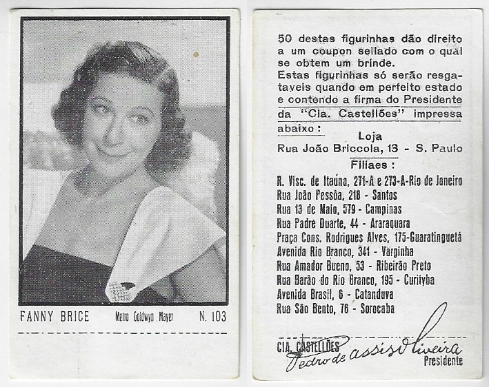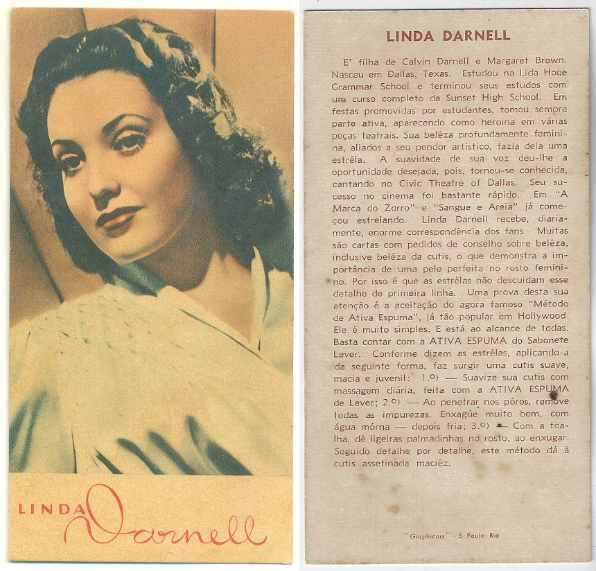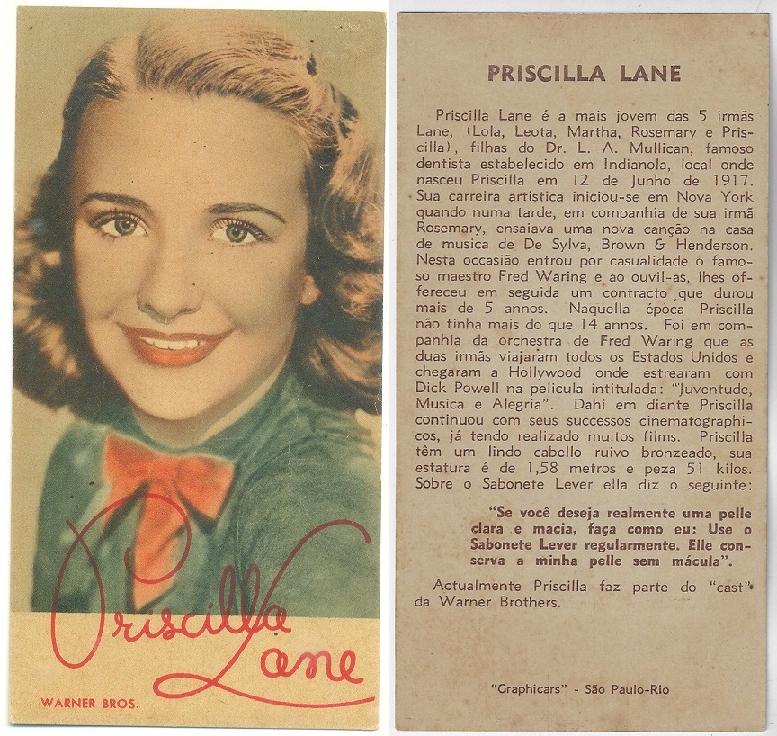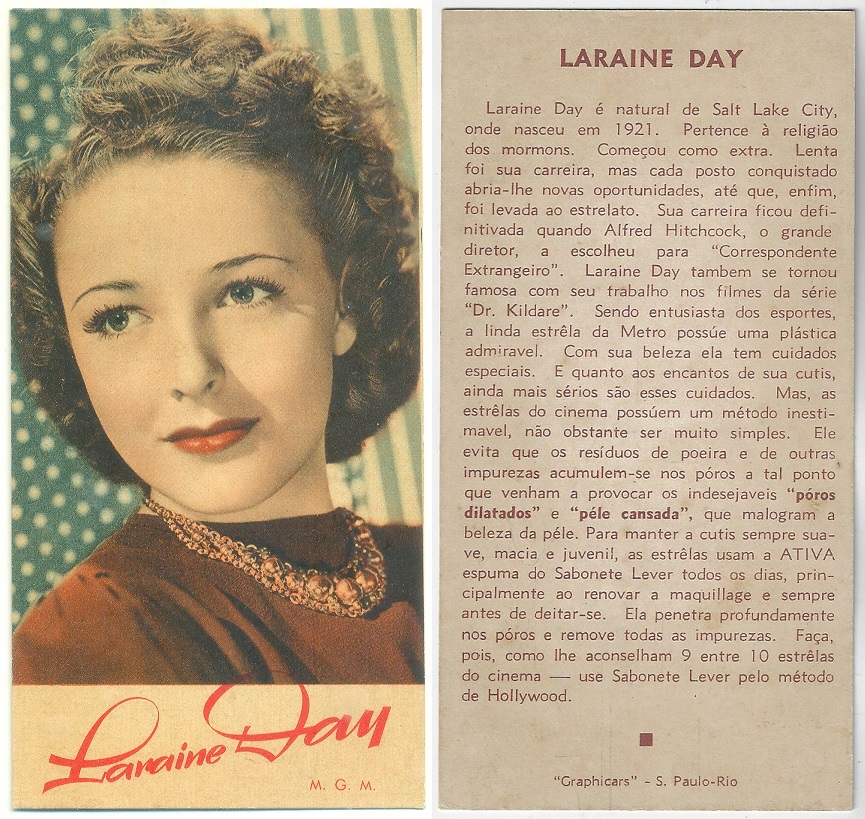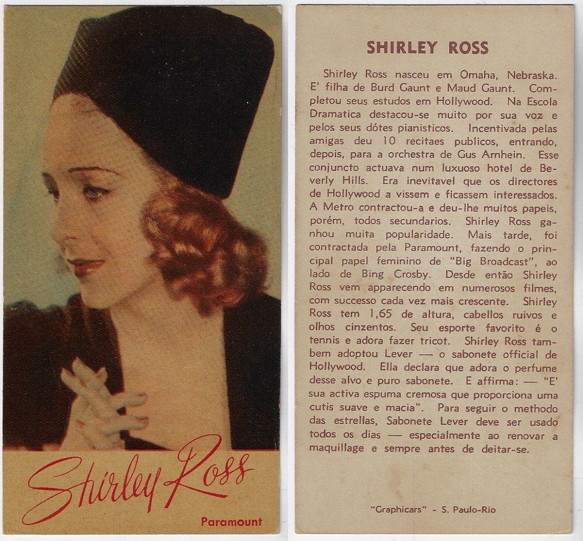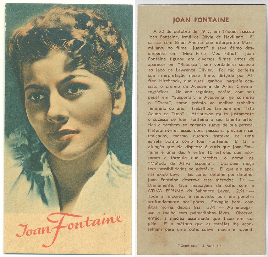 | 66108 | Brasil, 1930s, estampa Eucalol série 60, estampa 1, "Celebridades da Tela - Ann Sothern", verso "Usem..." | 25,00 | Foto |