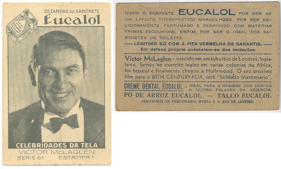 | 66114 | Brasil, 1930s, estampa Eucalol série 61, estampa 1, "Celebridades da Tela - Victor McLaglen", verso "Usem..." | 25,00 | Foto |