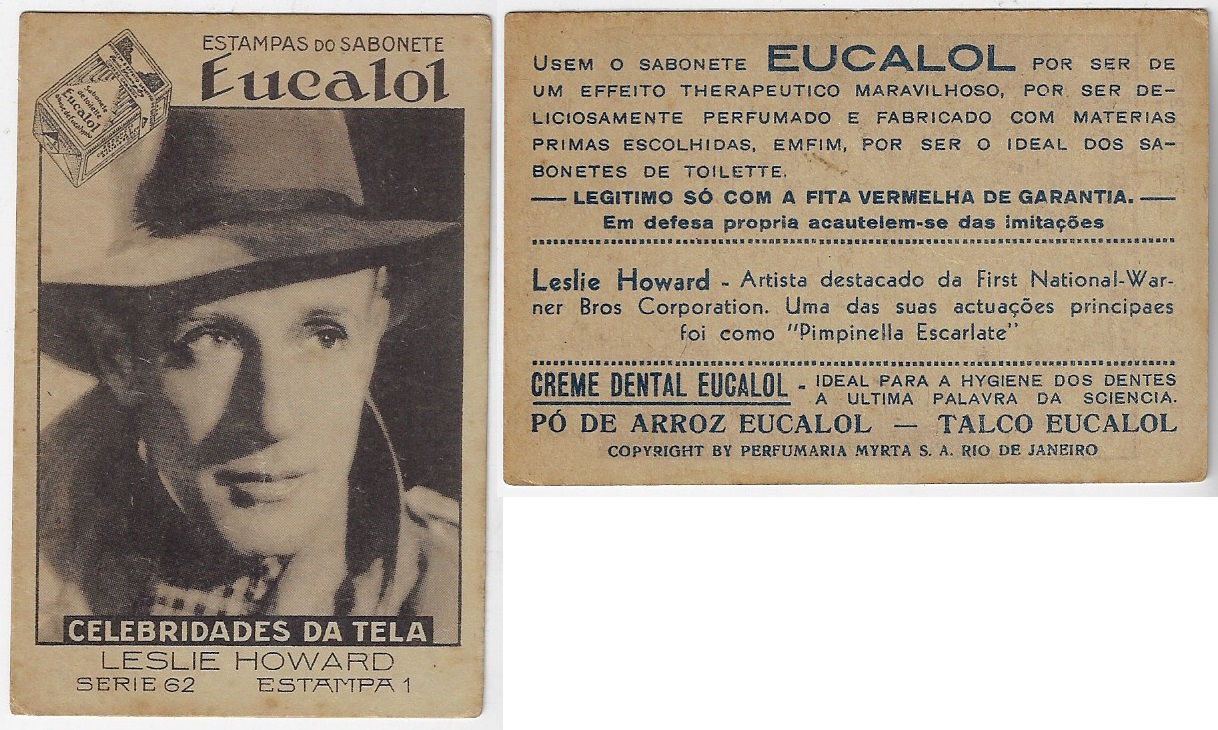 | 66120 | Brasil, 1930s, estampa Eucalol série 62, estampa 1, "Celebridades da Tela - Leslie Howard", verso "Usem..." | 25,00 | Foto |