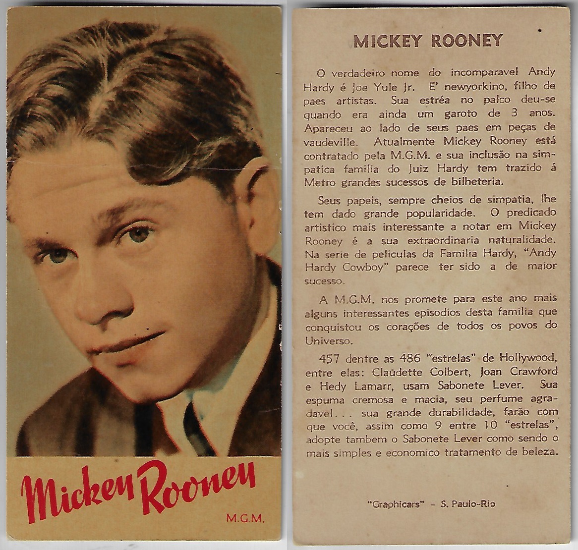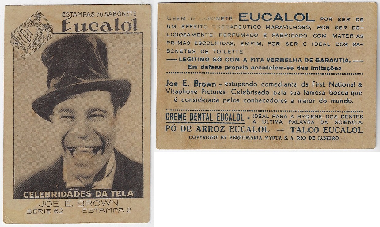 | 66121 | Brasil, 1930s, estampa Eucalol série 62, estampa 2, "Celebridades da Tela - Joe E. Brown", verso "Usem..." | 25,00 | Foto |