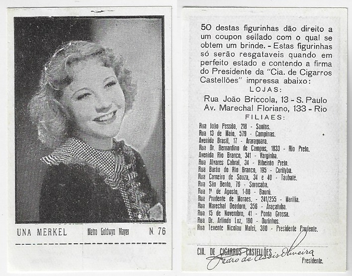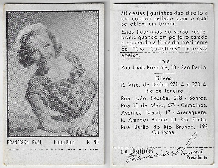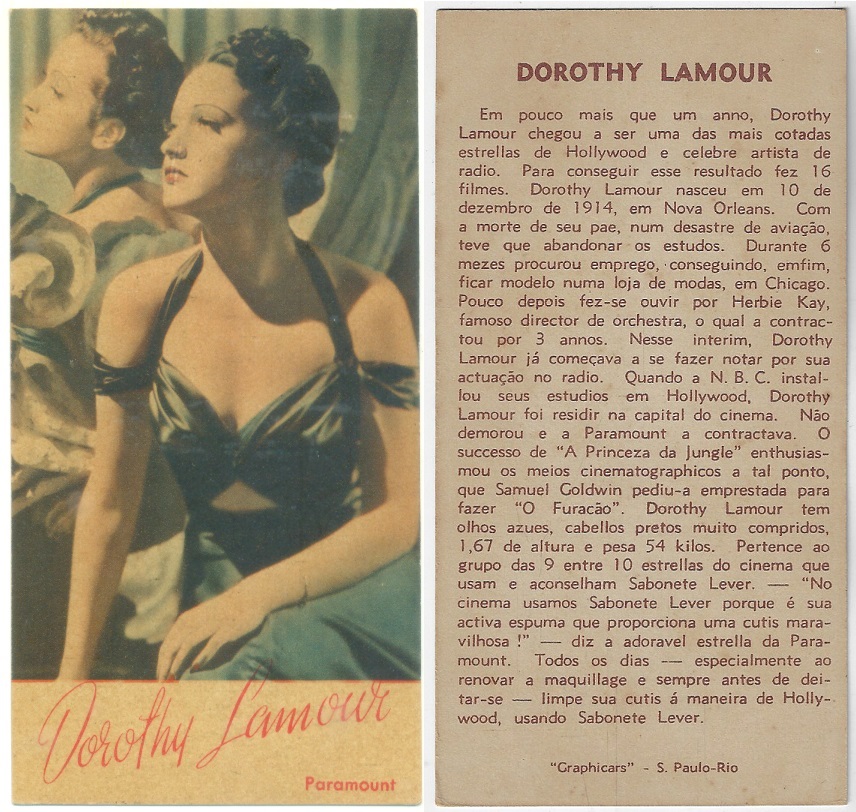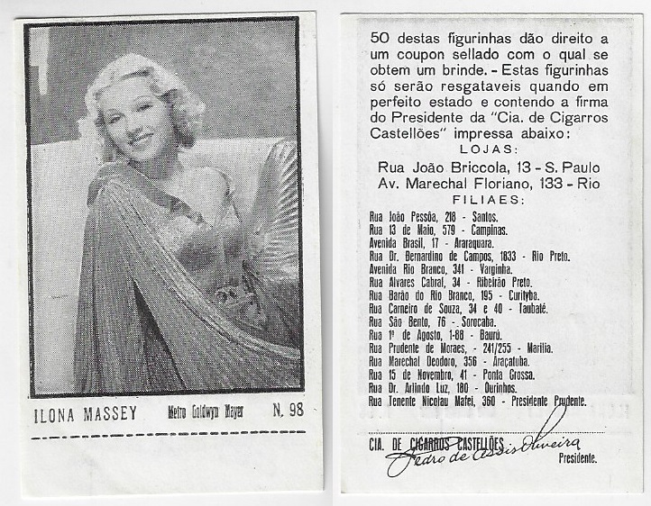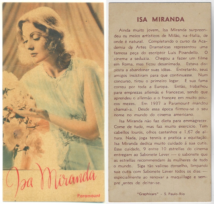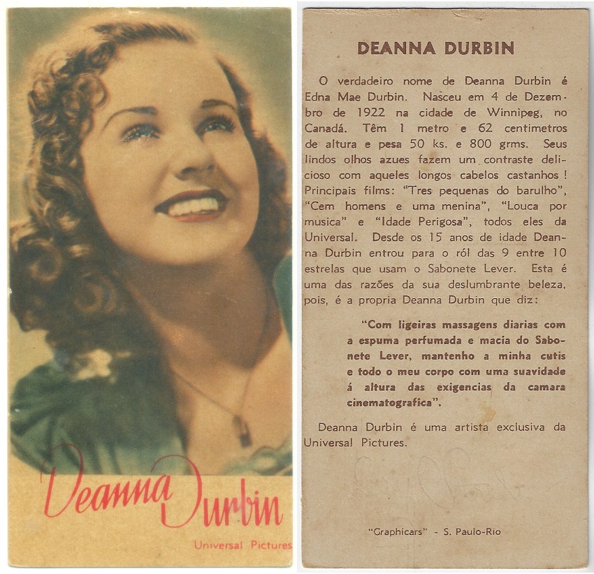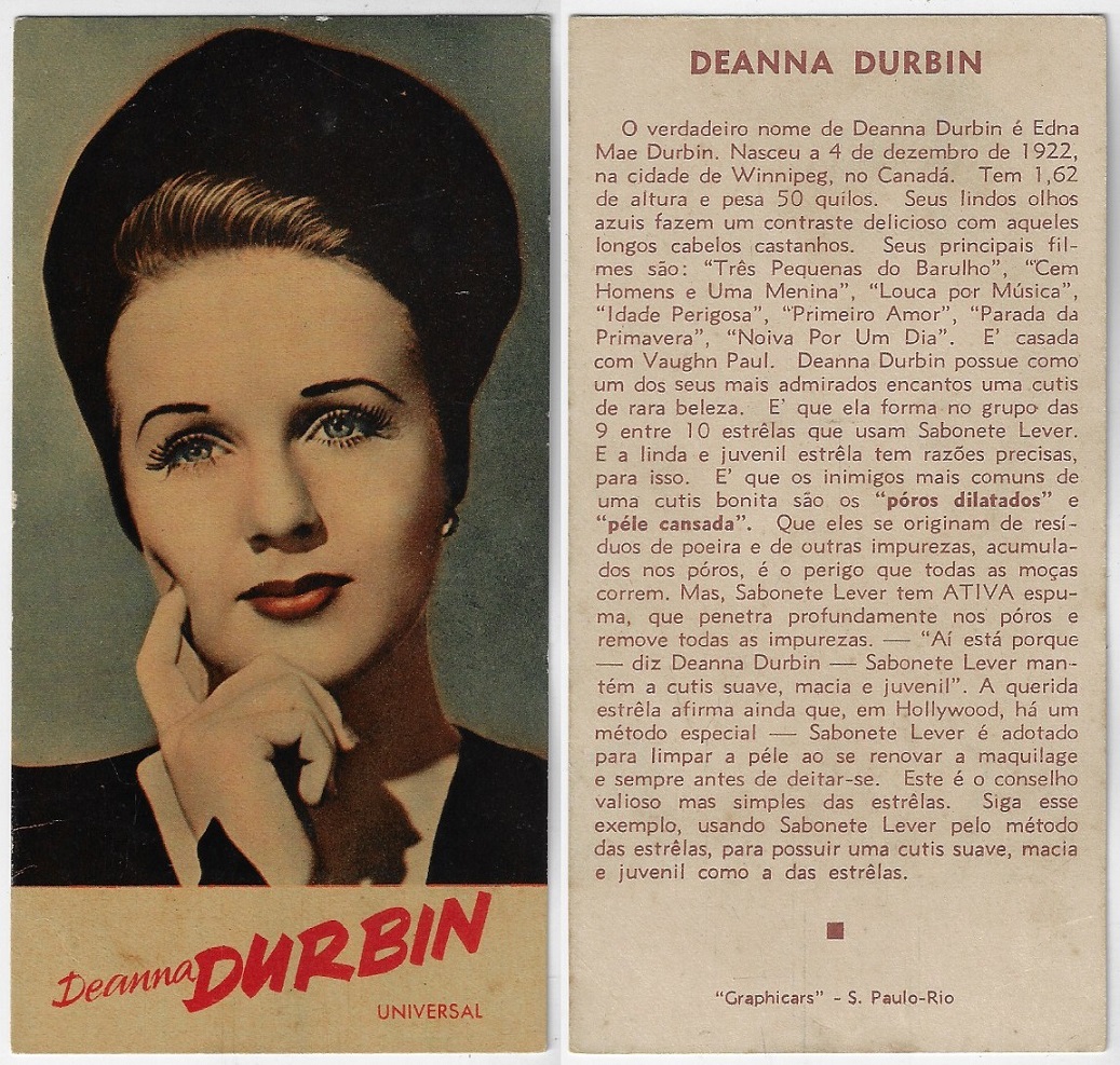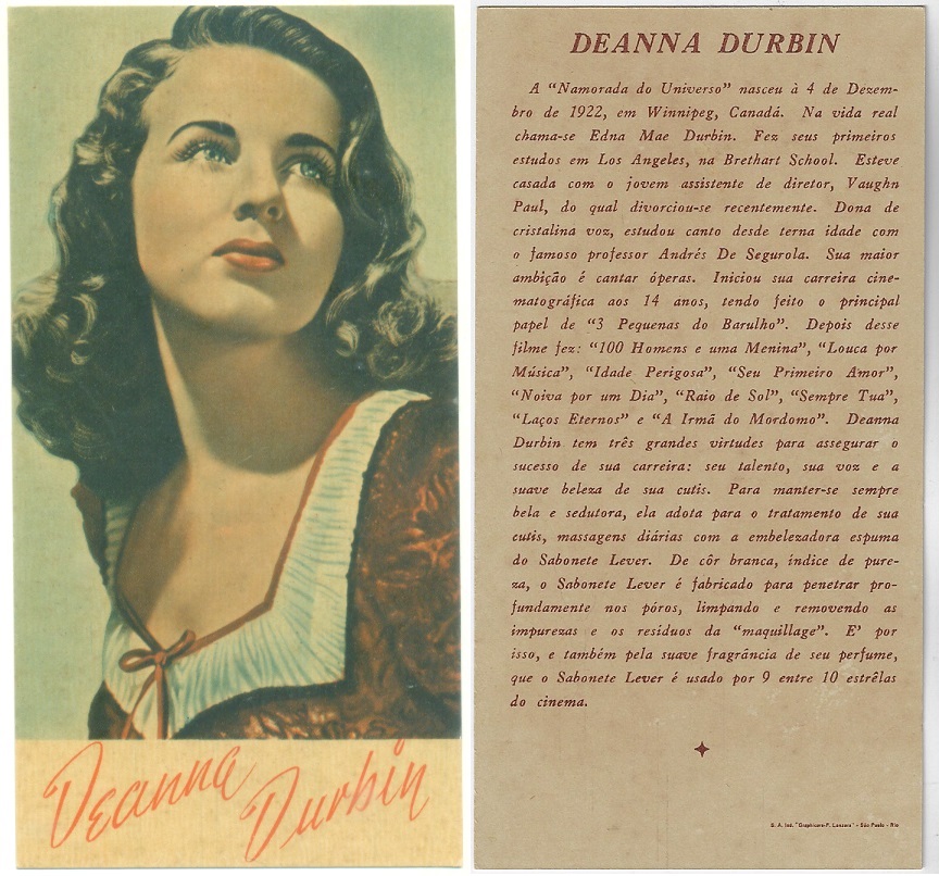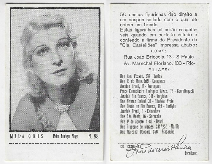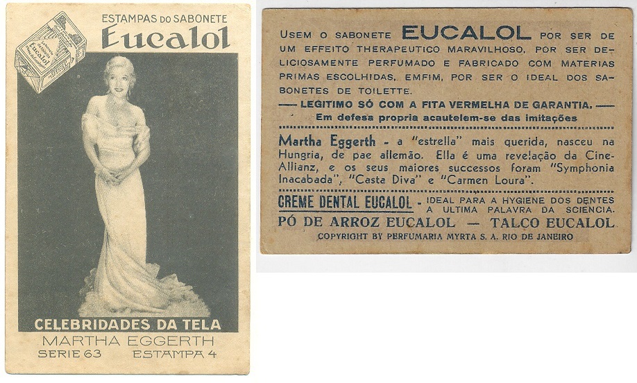 | 66129 | Brasil, 1930s, estampa Eucalol série 63, estampa 4, "Celebridades da Tela - Martha Eggerth", verso "Usem..." | 25,00 | Foto |