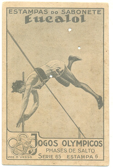 | 66031 | Brasil, 1930s, estampa Eucalol série 65, estampa 3, "Jogos Olímpicos - Fases do Salto", verso "Usem..." | 20,00 | Foto |