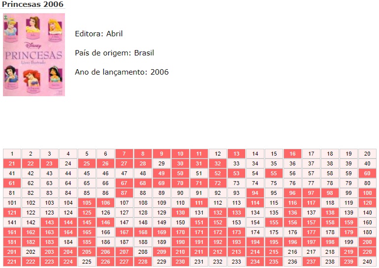 | 77703 | Brasil, 2016, álbum de figurinhas "Disney Princesas - Fabulosos Talentos", Editora Abril, vazio + 31 figurinhas soltas diferentes, sendo 6 especiais | 15,00 | Foto |