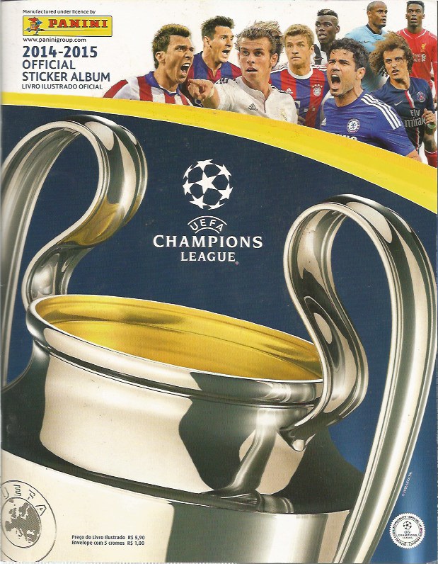 | 70167 | Brasil, 2014, álbum de figurinhas "UEFA Champions League 2014-2015", Editora Panini, com 580 das 634 figurinhas, sendo 61 metalizadas | 98,00 | Foto |