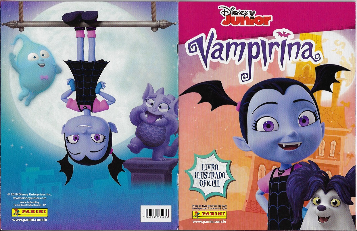 | 72694 | Brasil, 2019, álbum de figurinhas "Vampirina", Editora Panini, completo com 192 figurinhas coladas, sendo 24 especiais, pôster central solto | 44,00 | Foto |