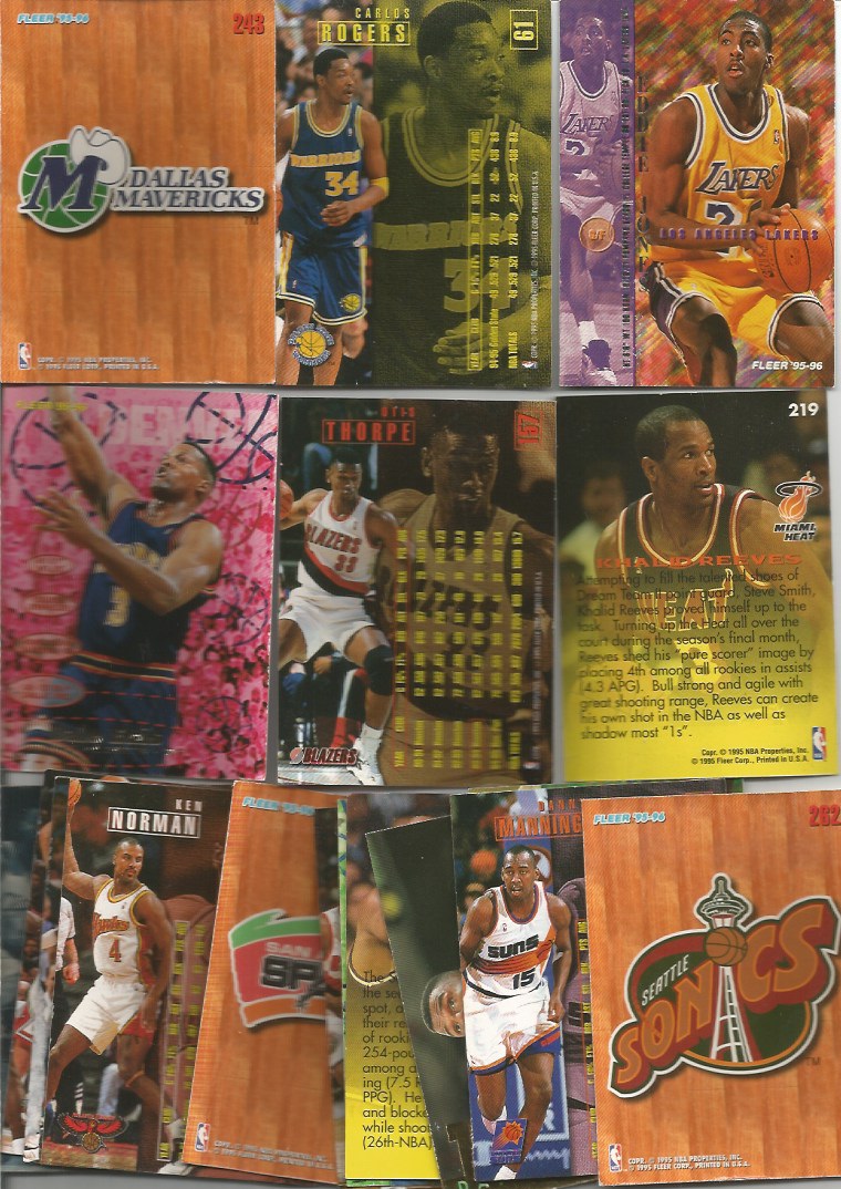 | 65373 | EUA, 1995/1996, coleção com 267 dos 270 cards da Temporada de Basketball da NBA, Editora Fleer, faltam nº 232, 236 e 270 | 135,00 | Foto |