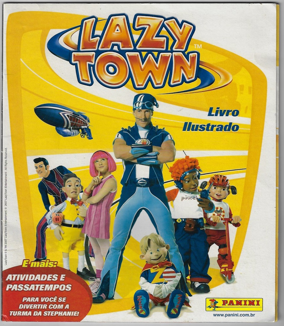 | 73366 | Argentina, 2007, álbum de figurinhas "Lazy Town", Editora Panini, completo com 152 figurinhas, sendo 24 metalizadas, pequenos defeitos decorrentes de umidade na borda inferior (ondulação) | 28,00 | Foto |