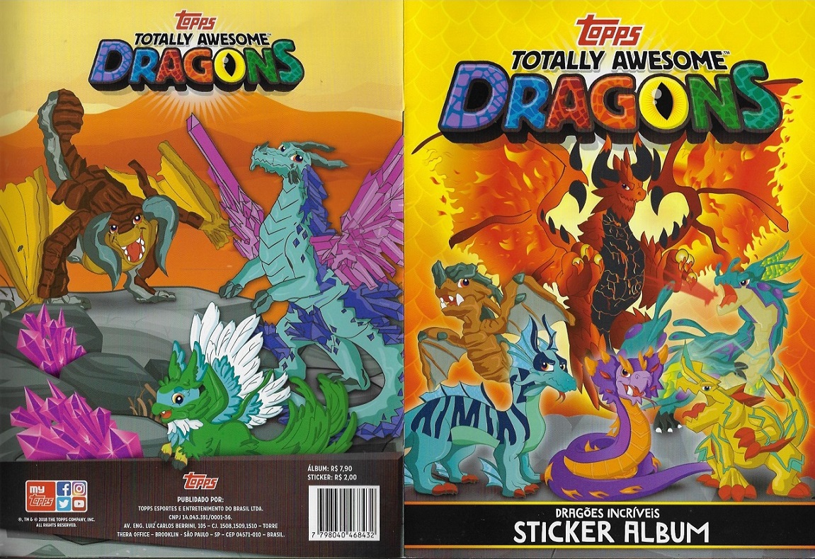 | 74431 | Brasil, 2019, álbum de figurinhas "Totally Awesome Dragons", Editora Topps, com 182 figurinhas coladas, sendo 16 metalizadas | 41,00 | Foto |