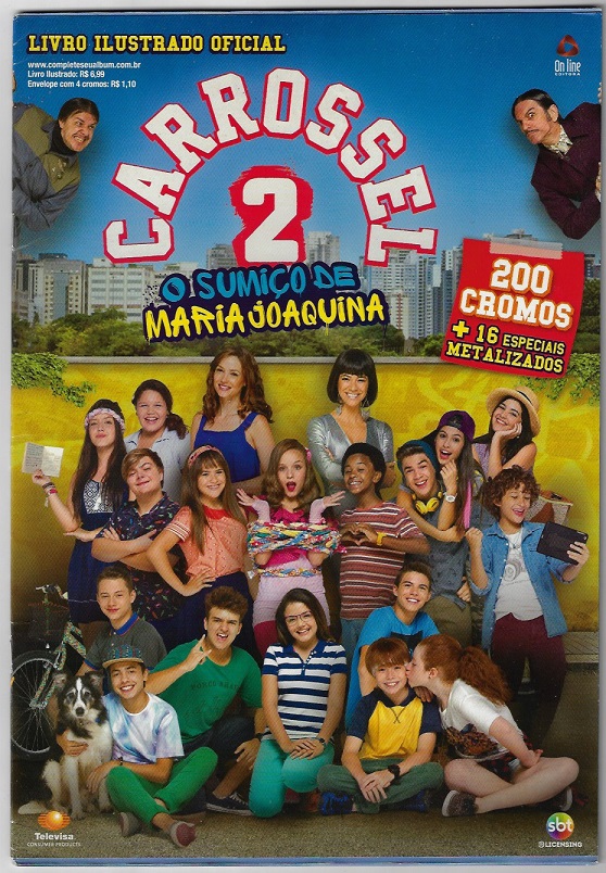 | 77692 | Brasil, 2016, álbum de figurinhas "Carrossel 2: O Sumiço de Maria Joaquina", Editora On Line, completo com 216 figurinhas, sendo 16 metalizadas | 37,00 | Foto |