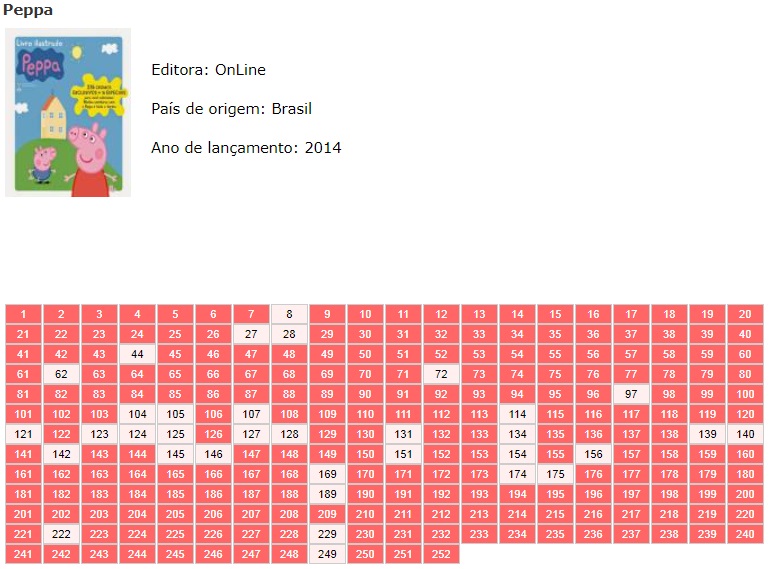 | 83203 | Brasil, 2018, álbum de figurinhas "Peppa Pig", Editora On Line, completo com 216 figurinhas coladas | 45,00 | Foto |