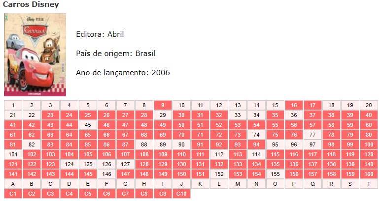 | 79206 | Brasil, 2018, álbum de figurinhas "Disney Carros 3", Editora Abril, completo com 180 figurinhas | 29,00 | Foto |