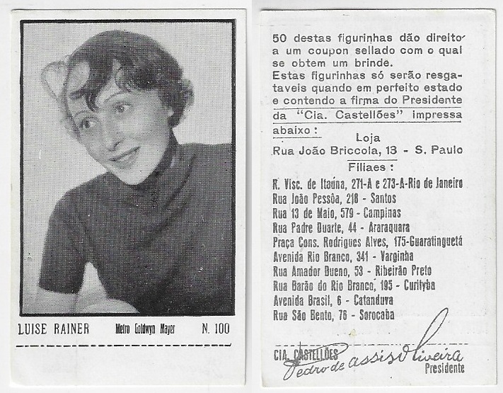 | 66182 | Brasil, 1930s, estampa Eucalol série 63, estampa 3, "Artistas de Cinema - Renate Mueller", verso "Usem...", canto quebrado | 15,00 | Foto |