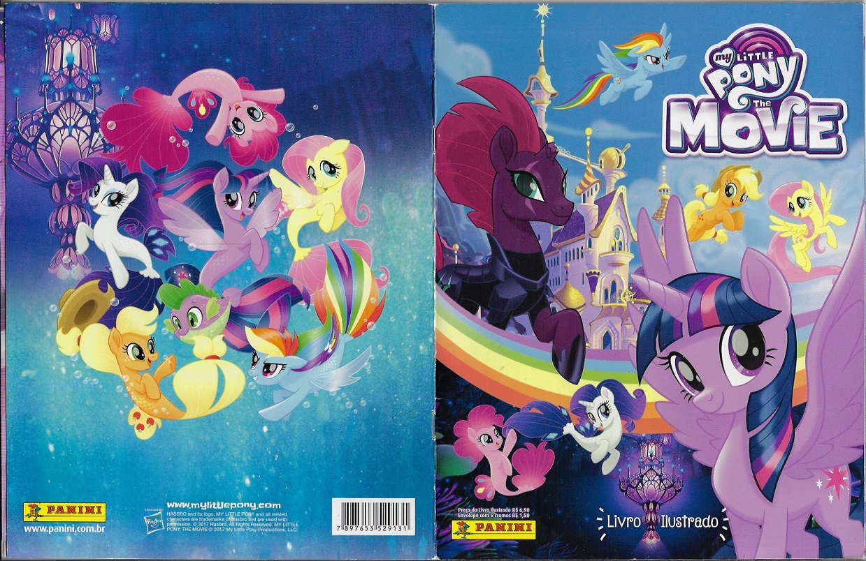 | 78588 | Brasil, 2017, álbum de figurinhas "My Little Pony - The Movie", Editora Panini, completo com 204 figurinhas coladas, sendo 36 metalizadas, pôster central solto, algumas folhas onduladas, possivelmente devido a umidade | 49,00 | Foto |