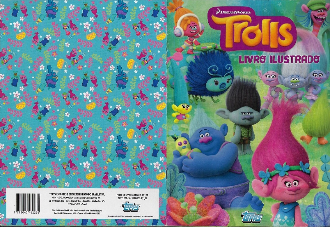 | 79226 | Brasil, 2016, álbum de figurinhas "Trolls", Editora Topps, completo com 180 figurinhas coladas, sendo 40 metalizadas | 45,00 | Foto |