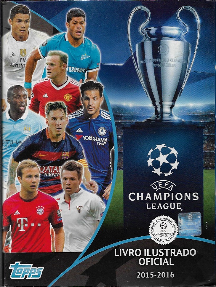 | 79237 | Brasil, 2015, álbum de figurinhas "UEFA Champions League 2015-2016", Editora Panini, completo com 623 figurinhas, sendo 91 metalizadas | 109,00 | Foto |