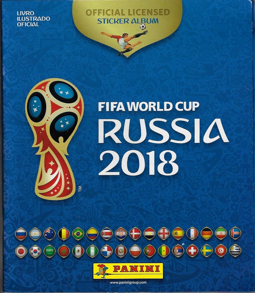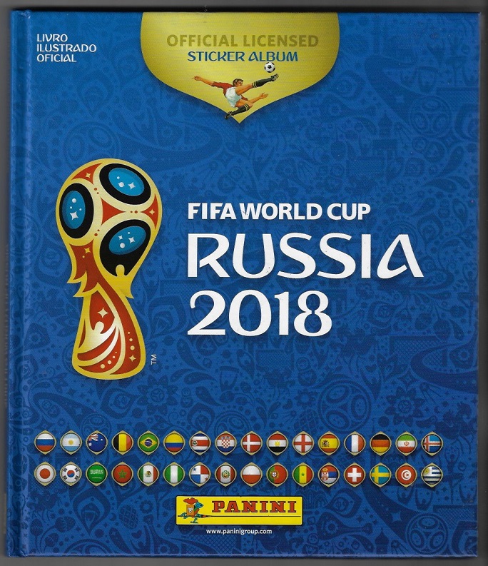 | 80469 | Brasil, 2018, álbum de figurinhas "Campeonato Mundial de Futebol - Rússia 2018", Editora Panini, com 553 das 681 figurinhas, sendo 12 metalizadas, capa dura | 120,00 | Foto |