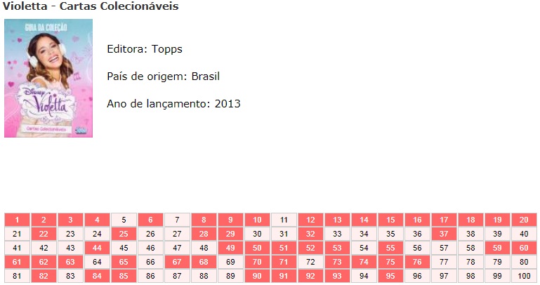 | 65711 | Brasil, 2014, álbum de figurinhas "Violetta - 2ª Temporada", Editora Panini, com 44 das 192 figurinhas, sendo 7 metalizadas | 10,00 | Foto |