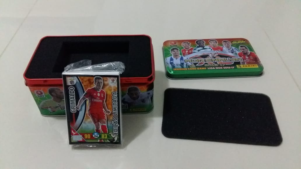 | 79900 | Portugal, 2016, lata com 40 cards em envelope lacrado, sobre Futebol, Editora Adrenalyn Panini | 50,00 | Foto |