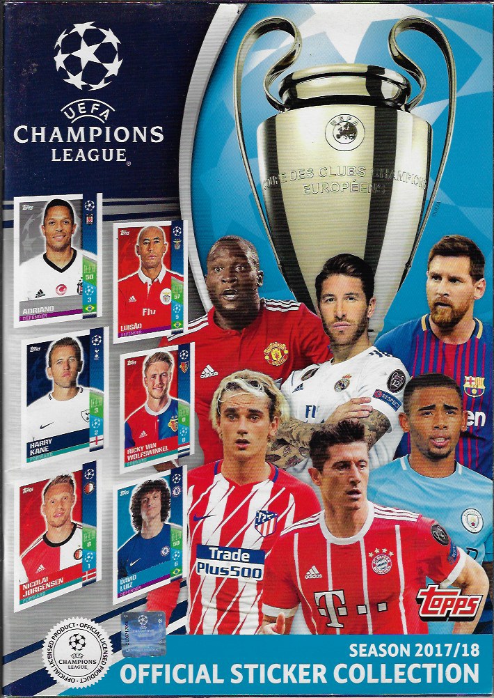 | 81113 | Brasil, 2017, álbum de figurinhas "UEFA Champions League 2017/18", Editora Topps, com 368 das 604 figurinhas, sendo 97 metalizadas | 70,00 | Foto |