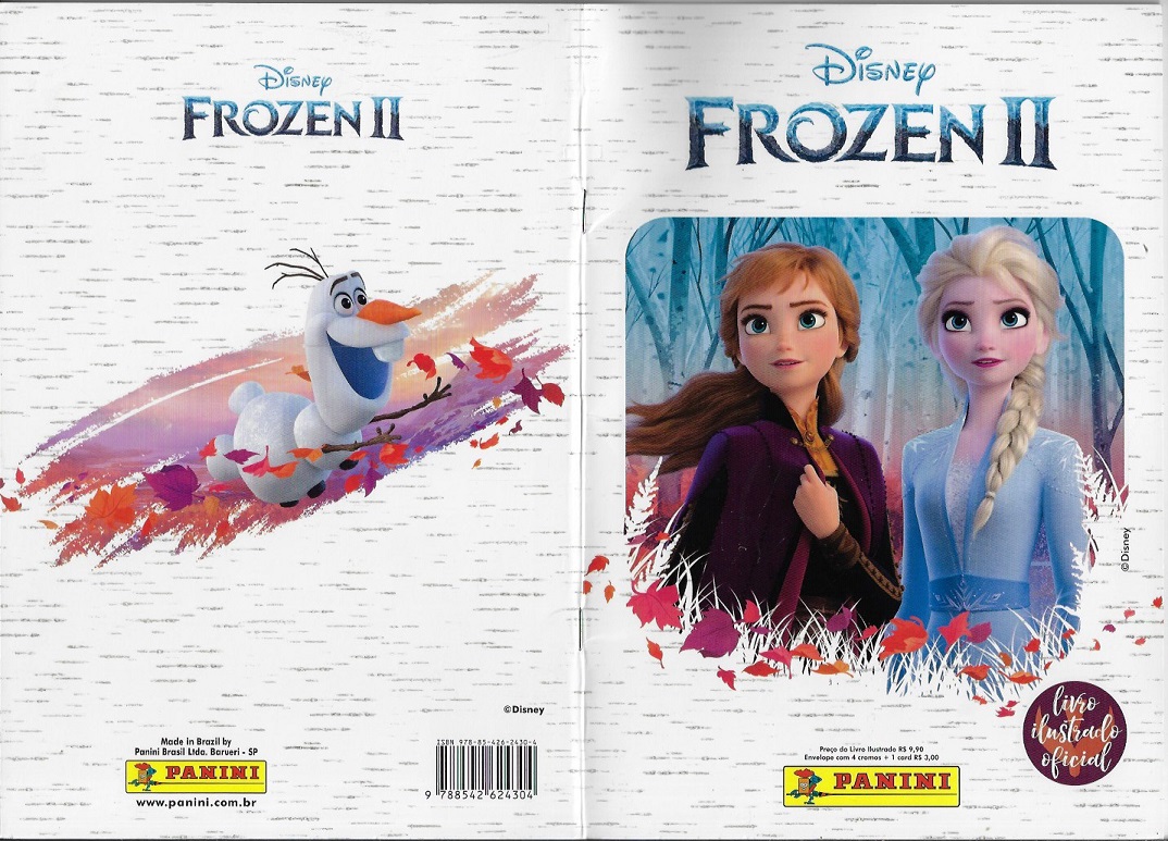 | 83496 | Brasil, 2019, álbum de figurinhas "Disney Frozen II", Editora Panini, completo com 216 figurinhas coladas, sendo 60 metalizadas, e 50 cards junto com a caixa para guardar os cards, pôster e folha central estão soltos | 78,00 | Foto |