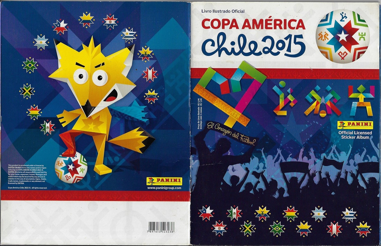 | 83504 | Brasil, 2015, álbum de figurinhas "Copa América Chile", Editora Panini, completo com 348 figurinhas coladas, sendo 24 especiais | 72,00 | Foto |