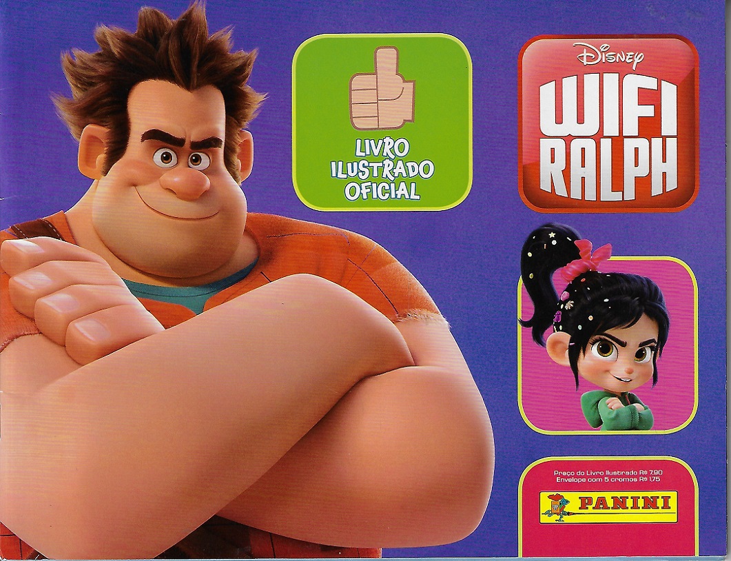 | 83556 | Brasil, 2018, álbum de figurinhas "Wifi Ralph", Editora Panini, completo com 192 figurinhas coladas, sendo 22 especiais, pôster central solto | 44,00 | Foto |