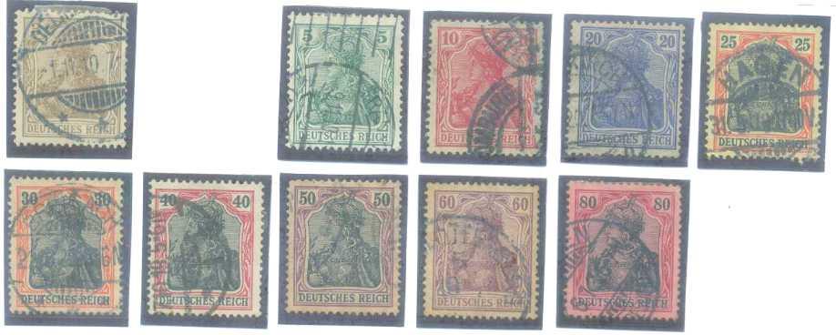| 55853 | Reich, Mi- 83, 85/93, Germânia, carimbados (39 €) | 29,00 | Foto |