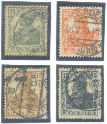 | 55854 | Reich, Mi- 98/101, Germânia, carimbados (12,5 €) | 9,50 | Foto |