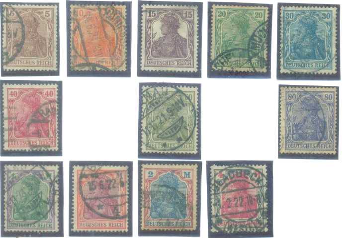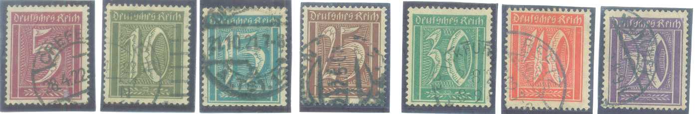 | 55893 | Reich, Mi-159/164, Cifras, carimbados (21,5 €) | 16,00 | Foto |