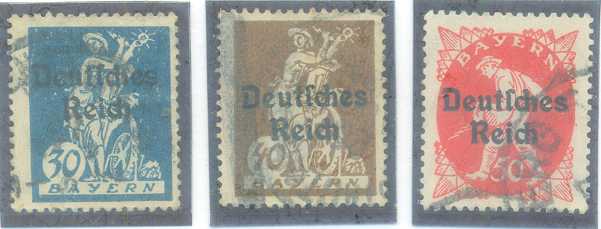 | 55892 | Reich, Mi-123/125, Emissão de Bayern sobrestampada, carimbados (12,5 €) | 9,40 | Foto |