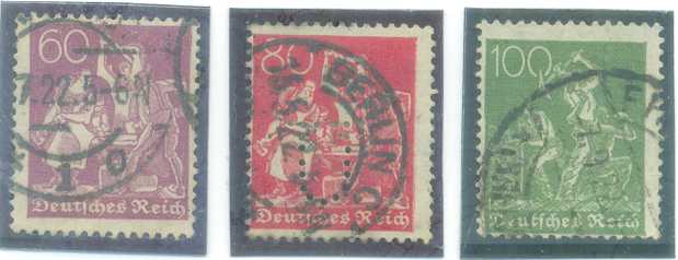 | 55894 | Reich, Mi-165/167, Trabalho, Mi-166 com perfin, carimbados (24 €) | 18,00 | Foto |