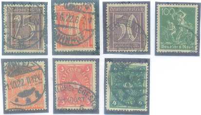| 55861 | Reich, Mi-140/145, 147 e 149/153, Germânia, carimbados (38,5 €) | 29,00 | Foto |